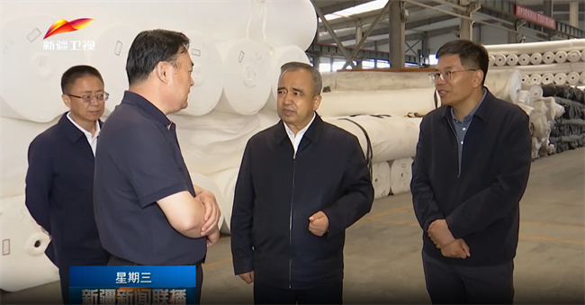 在疆金大禹环境科技有限公司,详细了解复合土工膜工艺技术。他表示,要充分发挥新疆资源,努力降本增效,充分发挥链主企业作用,积极以商招商,在延链补链强链上下功夫。