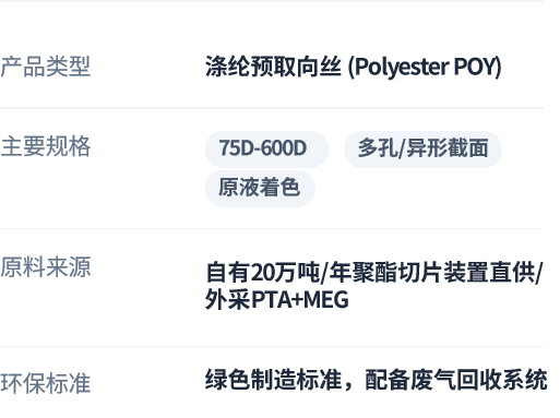 填补新疆及西北地区高品质POY产能缺口,缩短运输半径,为客户提供“即时交付”的供应链保障。