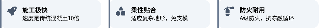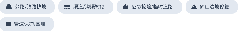 水泥毯(Concrete Canvas)是一种浸渍了特种水泥的柔性布,遇水水化反应后固化成坚硬的混凝土层。它结合了土工布的柔韧性与混凝土的高强度,解决了传统混凝土施工难、周期长的问题。金大禹水泥毯具有施工快捷、防火、防渗、耐久等特性,是边坡防护与应急抢险的理想材料。